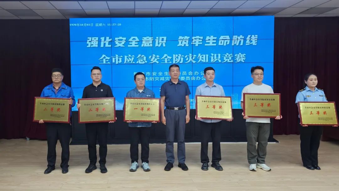 6月27日上午,市安委會辦公室、市防災減災救災委員會辦公室聯合舉辦全市應急安全防災知識競賽。市安委會副主任、市應急局黨委書記、局長宋永福參加活動并為獲獎隊伍頒獎。市安委會、市防災減災救災委員會成員單位,市直及省屬駐張有關單位,市、縣區應急管理系統共150多人參加活動。