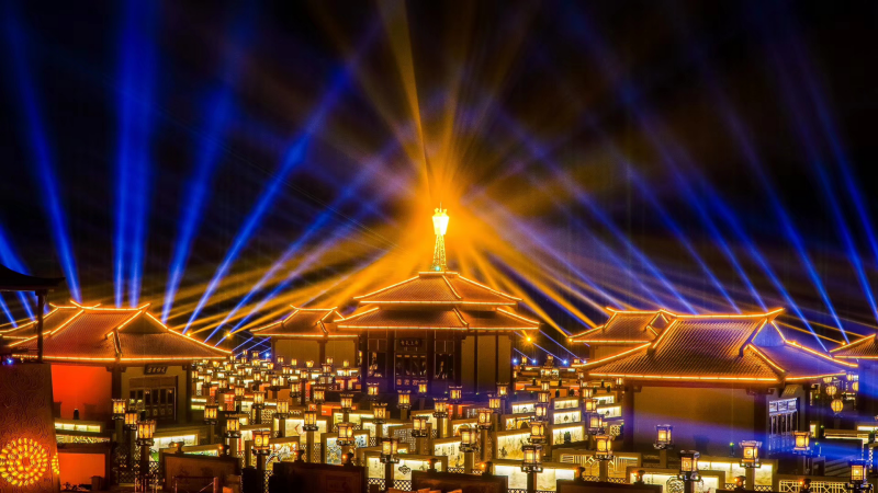 2019年1月,“九曲黃河燈陣”被上海大世界評為“中國規模最大的燈陣”,配套升級演出《張國臂掖》是中國首部以漢代軍事主題為主的大型實景光影劇,將燈陣啟燈儀式、實景演藝與燈光秀表演高度融合,將傳統文化之美,通過“燈”這種象征吉祥寓意的媒介,以“浸入”的形式,讓觀眾作為整個空間形態演變的參與者,感受到漢代屋蘭古鎮市井風貌,穿越到大漢年代的繁華街巷,給游客帶來身臨其境的互動體驗享受。
