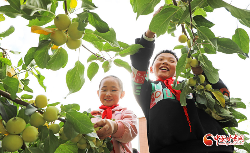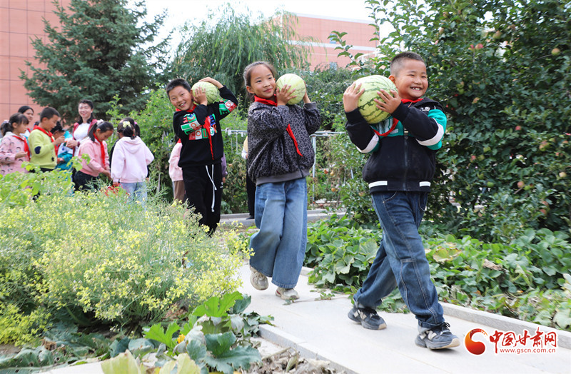 近日,民樂縣金山小學舉辦校園“豐收節”,師生們在校園農場里采摘蘋果、西瓜、辣椒、茄子等農作物,享受豐收的喜悅和勞動的快樂。