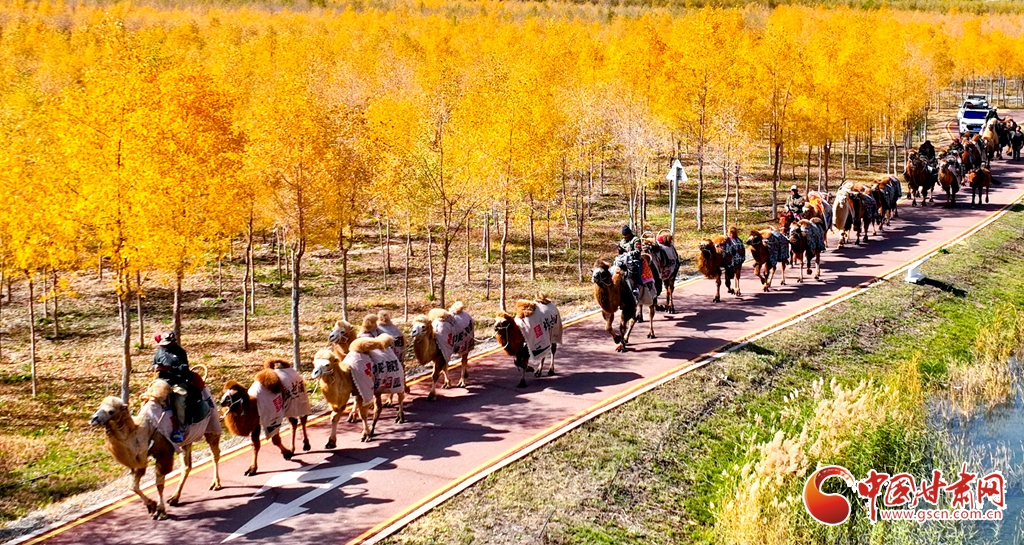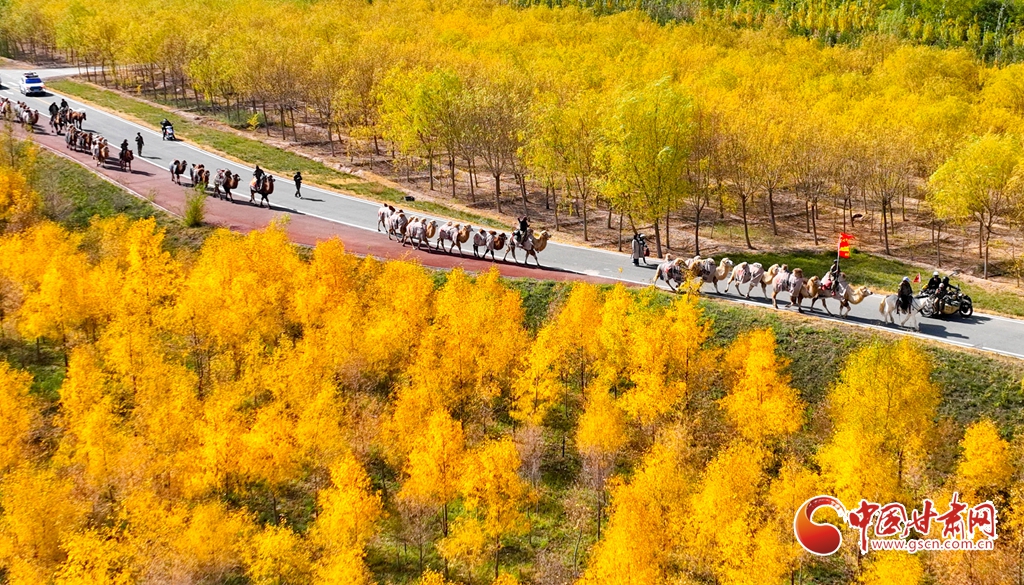 金秋十月,張掖市甘州區黑河林場萬畝胡楊林迎來流金季節。10月15日,一支駝隊行進其間,領略這最美的時光。這片昔日亂石林立、滿目瘡痍的黑河亂石灘,如今已成為6萬畝的城市森林,游人、駝隊行進其中,與金色林海共同構成了一幅動人的生態畫卷。