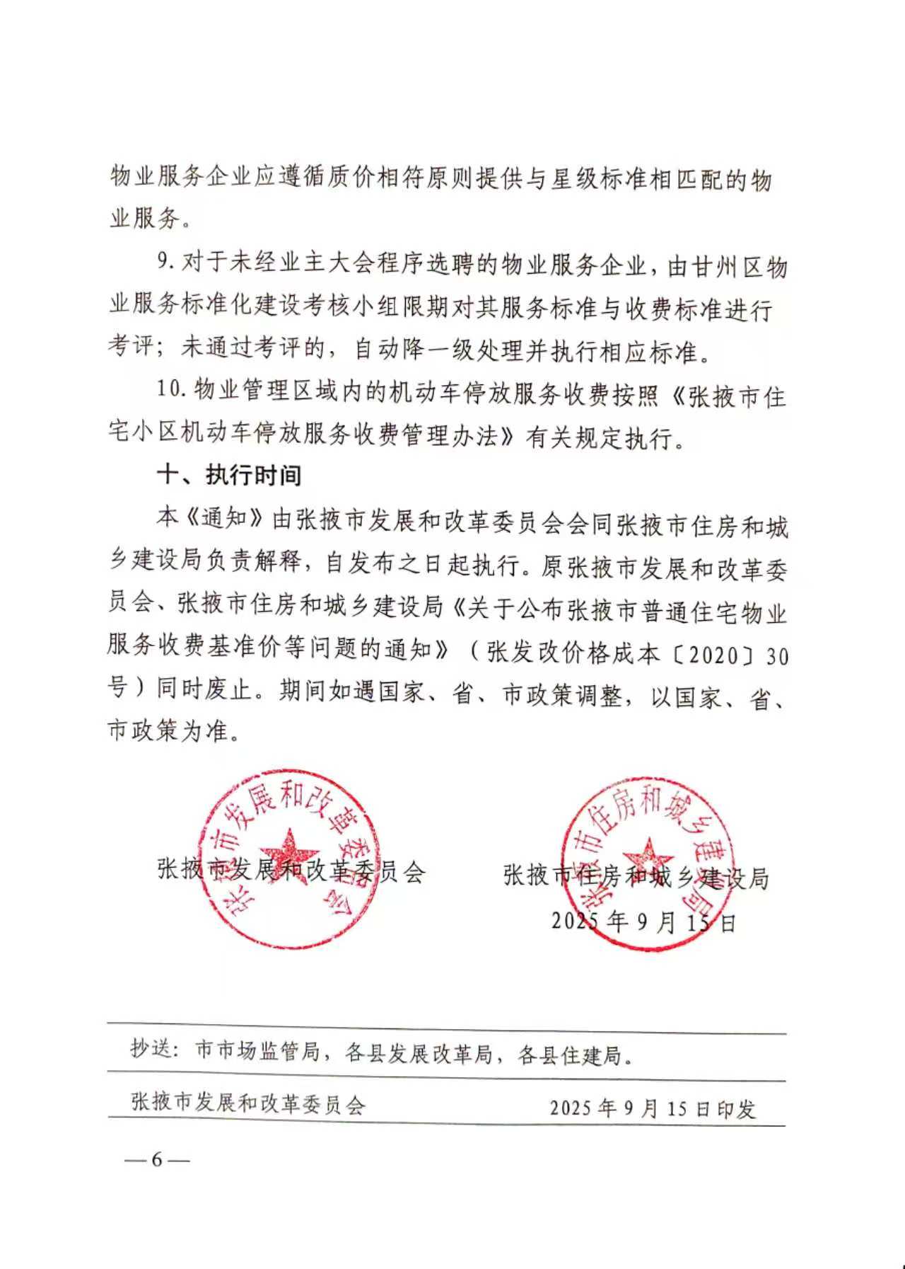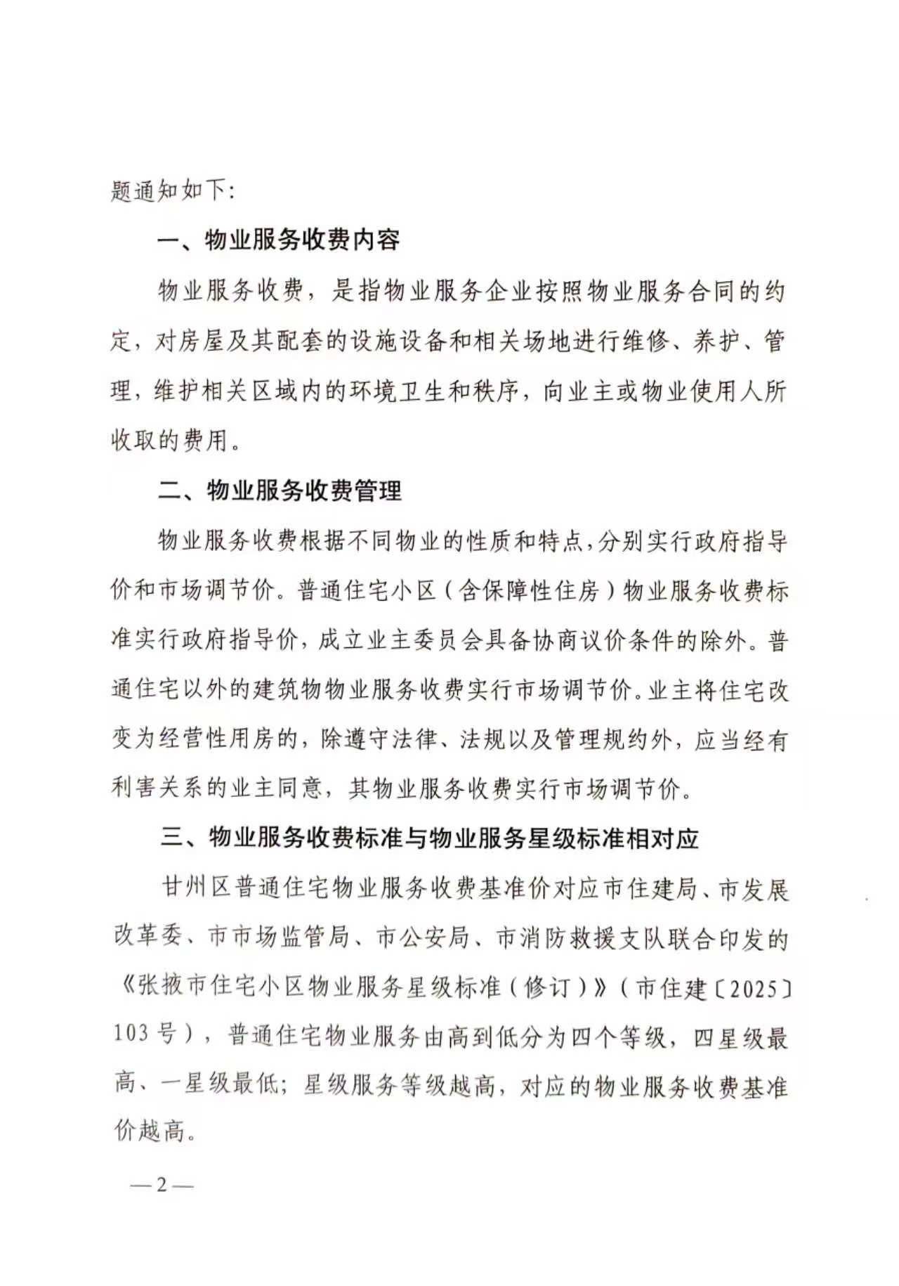 張掖市發展和改革委員會 張掖市住房和城鄉建設局 關于規范甘州區物業服務收費行為的通知