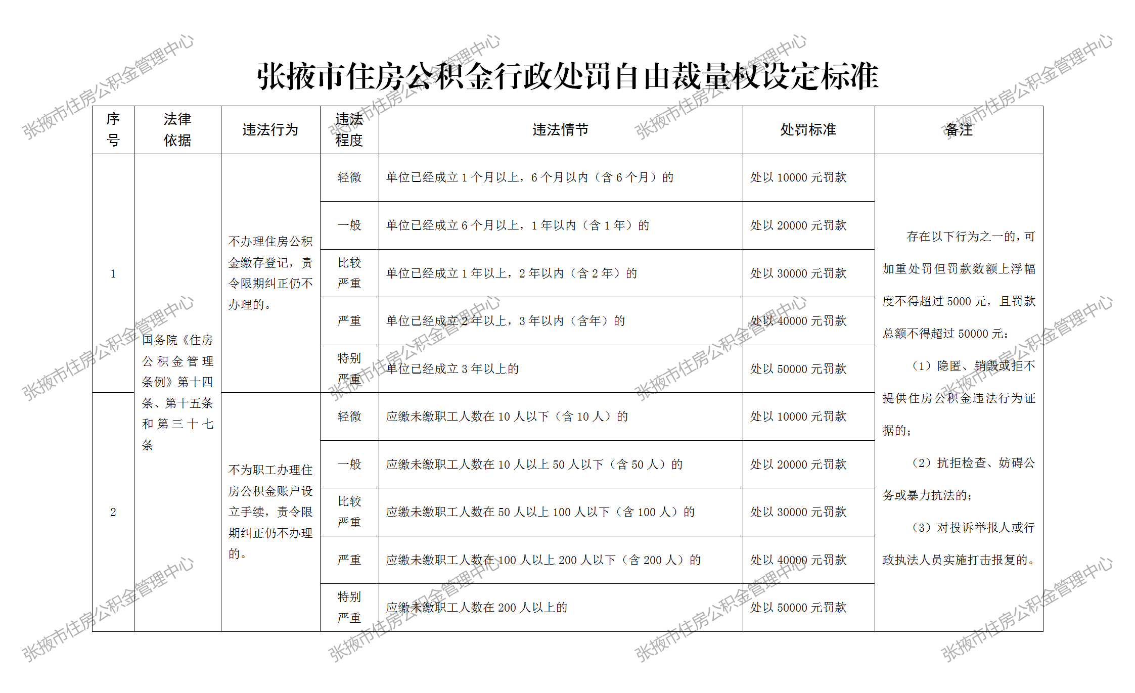 張掖市住房公積金行政處罰自由裁量權設定標準