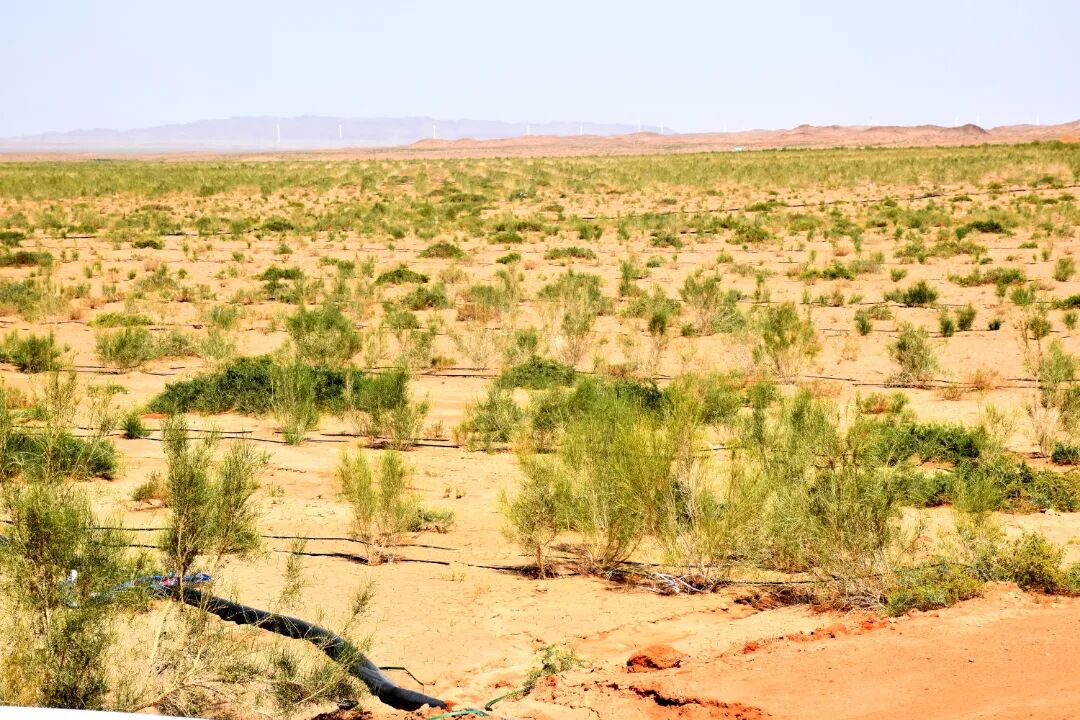 九月,高臺縣黑河之畔、北部灘邊,風卷細沙掠過連綿的梭梭林,滴灌帶發(fā)出細微的叮咚聲,嫩綠的枝丫牢牢鎖住流沙。