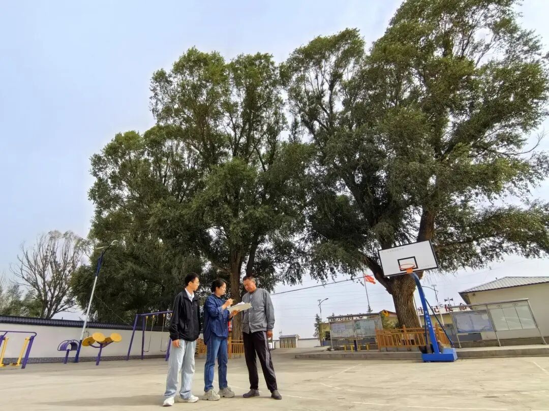 在山丹縣陳戶鎮(zhèn)三十里堡村,村委會門口兩棵樹齡超過150年的老楊樹,已成為村民日常生活的情感依托。每天清晨,67歲的許天文總會來到樹下,以布滿老繭的手掌輕撫皴裂的樹皮。“從小記得爺爺就說,這樹一直在這兒。”他望著茂密的樹冠說,“孫輩在樹下玩耍,老人們在樹蔭下乘涼聊天——它早已成為我們村的情感紐帶。”