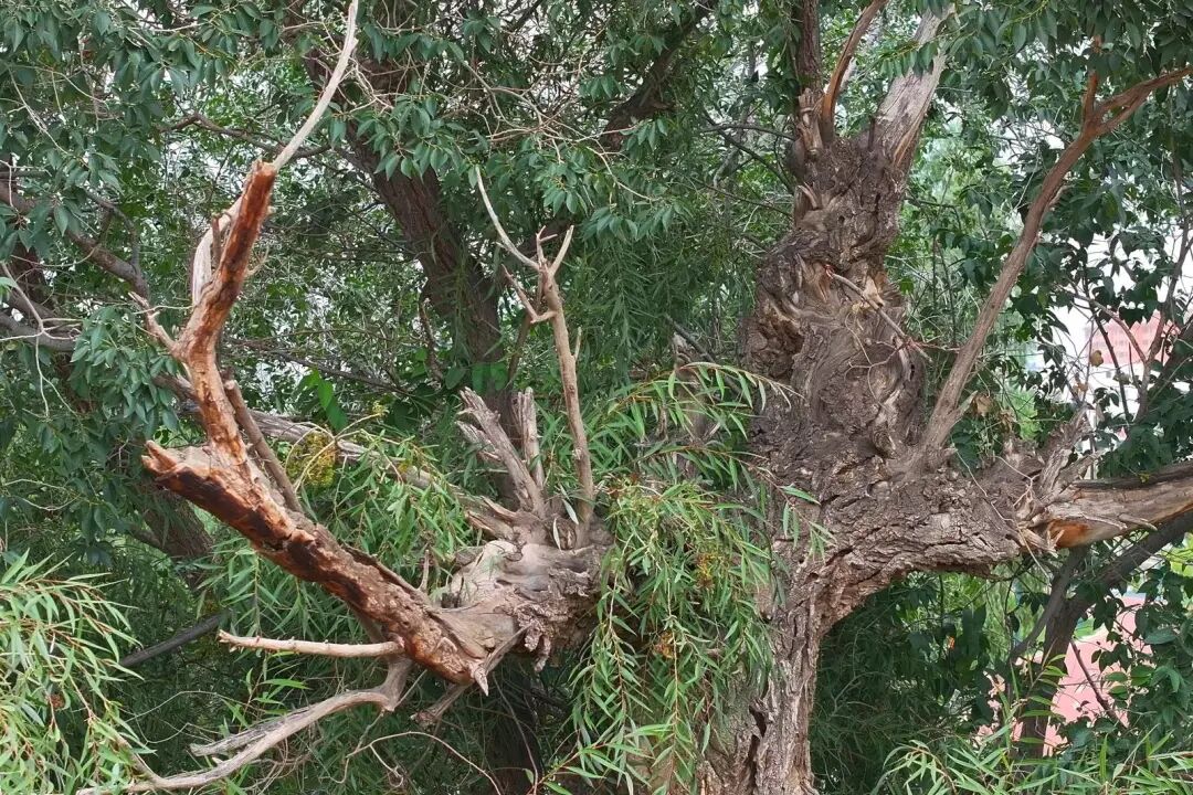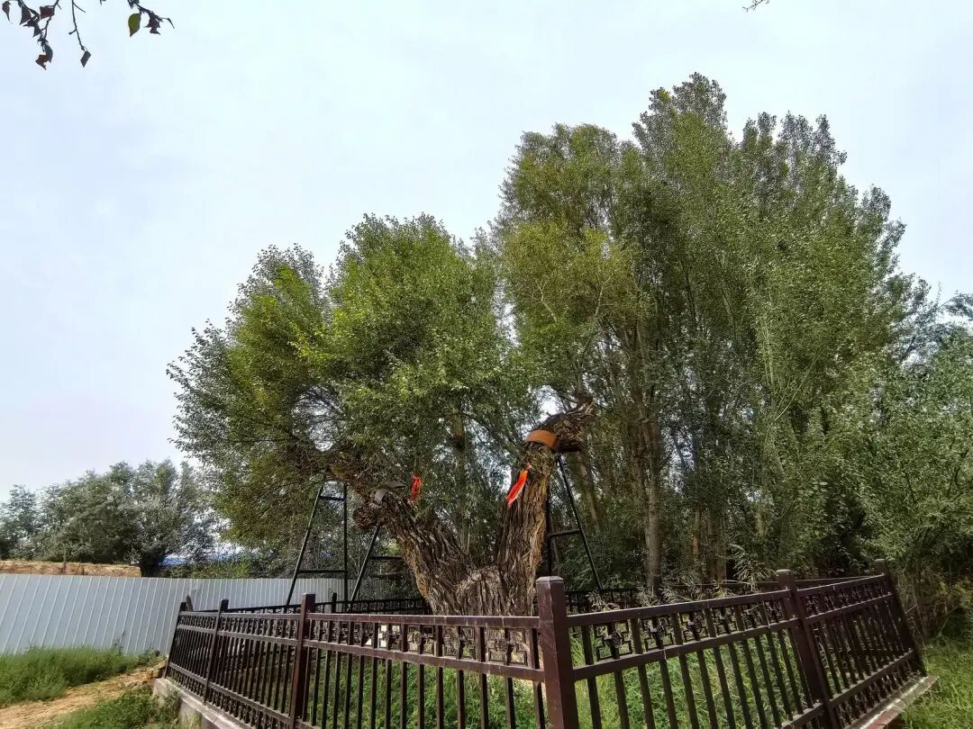 相比三十里堡村,位奇鎮(zhèn)新開村的古樹承載著更深厚的歷史記憶。據(jù)傳,因發(fā)現(xiàn)村邊有一處常年不涸的泉眼,先民在此定居并種下這些樹木,既祈愿水源永續(xù)、家園興旺,也以此為基礎逐漸發(fā)展成村落。如今,這些樹齡超過600年的古樹雖樹干皴裂如老人面容,卻新枝勃發(fā),被當?shù)厝司捶Q為象征生命力的“英雄樹”。一位當?shù)乩先烁锌?“在戈壁活下來靠的是韌性,而現(xiàn)在守護它靠的是人心。”