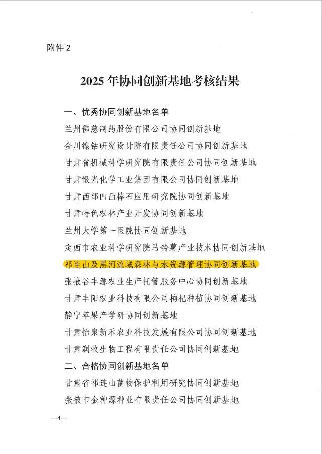日前,甘肅省協同創新基地省級評估結果正式公布,甘肅省祁連山水源涵養林研究院祁連山及黑河流域森林與水資源管理協同創新基地(以下簡稱“基地”)獲評“優秀”等次。