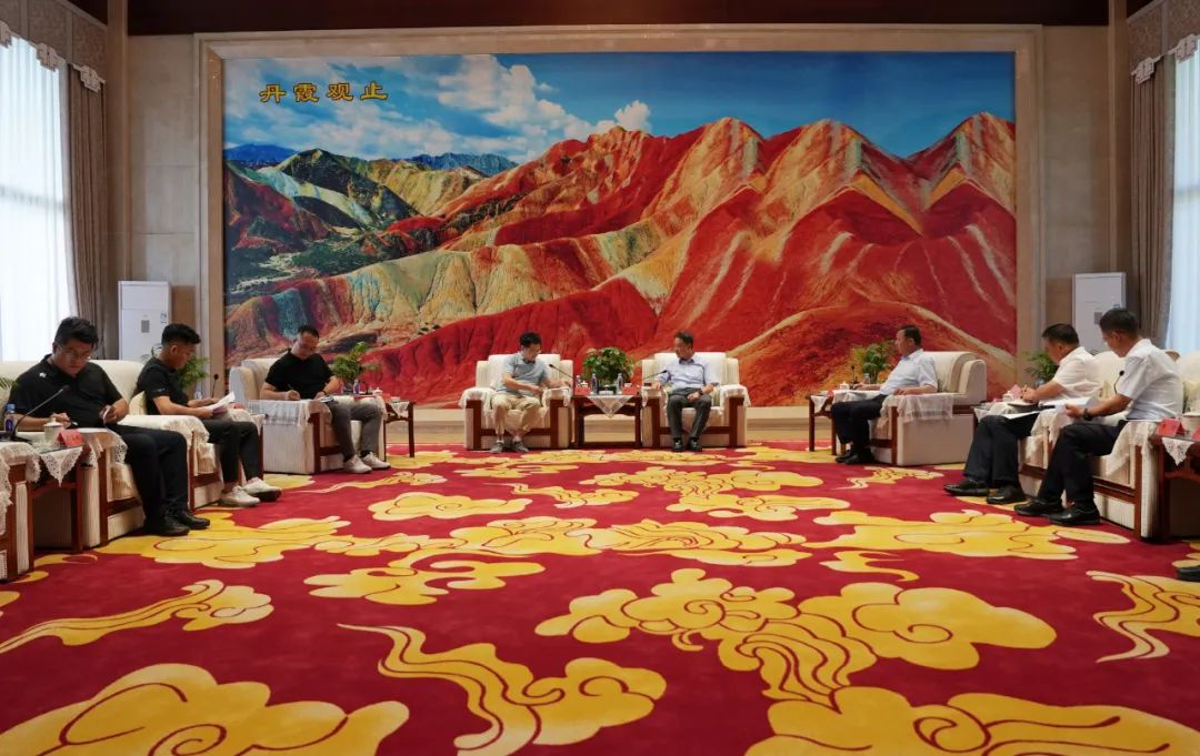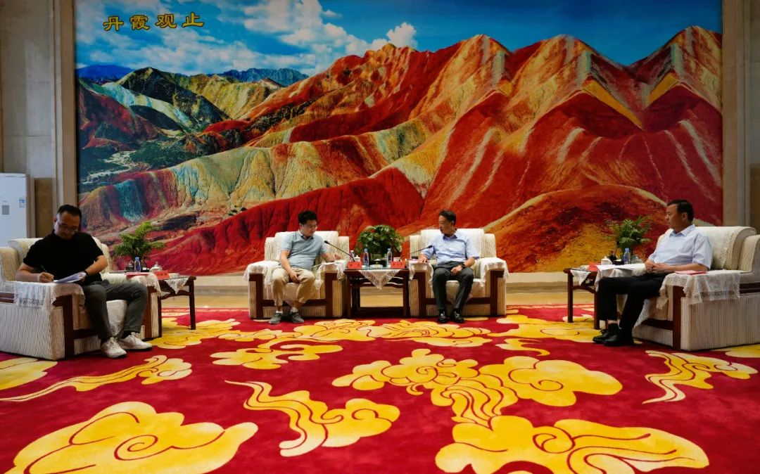 8月12日,張掖市委書(shū)記盧小亨,市委副書(shū)記、市長(zhǎng)葉爾波力·孜汗與湖南桑尼森迪國(guó)際文化傳媒有限公司董事長(zhǎng)楊杰、總經(jīng)理?xiàng)钫聍胱劊p方就合作推動(dòng)文創(chuàng)盲盒項(xiàng)目進(jìn)行交流。