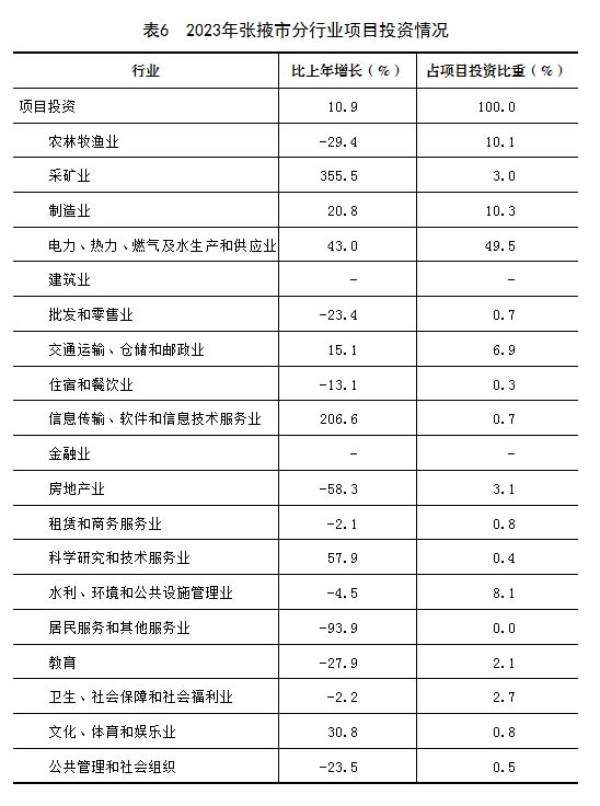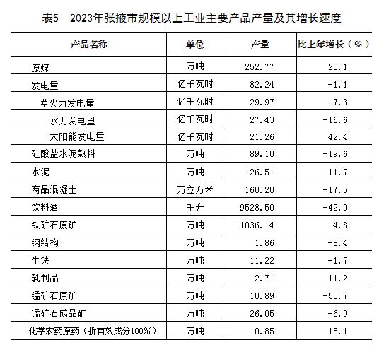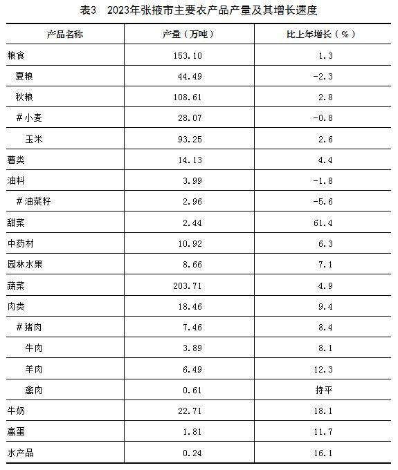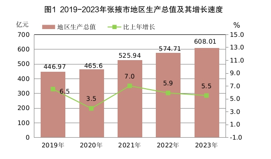 1.本公報各項數據均為初步統計數,正式數據以《張掖統計年鑒2023》為準。部分數據因四舍五入的原因,存在著總計與分項合計不等的情況。