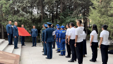 “我志愿加入中國共產(chǎn)黨,擁護(hù)黨的綱領(lǐng),遵守黨的章程……”默哀結(jié)束后,鮮紅的黨旗緩緩展開,黨員干部和退役軍人黨員們舉起右拳,以鏗鏘有力的聲音重溫入黨誓詞。誓言回蕩在陵園上空,不僅是對入黨初心的再次叩問,更是對“退役不褪色、離軍不離黨”信念的堅定踐行——曾經(jīng),他們身著戎裝守護(hù)家國;如今,他們以黨員身份傳承抗戰(zhàn)精神,用誓言承諾將先輩的奉獻(xiàn)情懷融入新時代的使命擔(dān)當(dāng)。