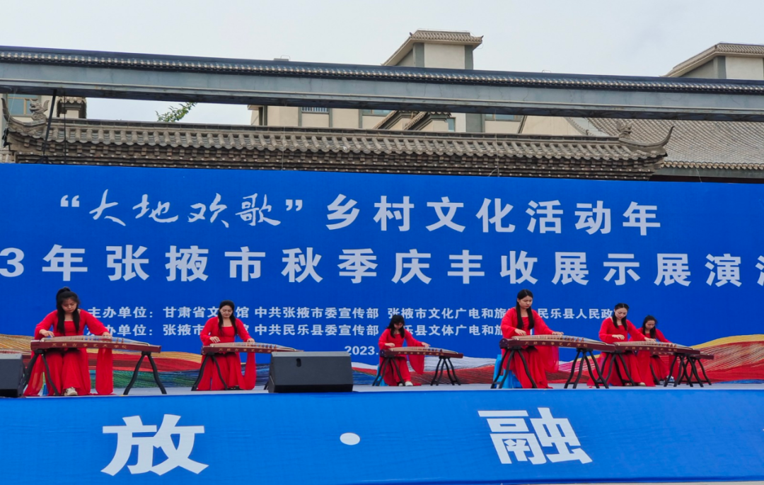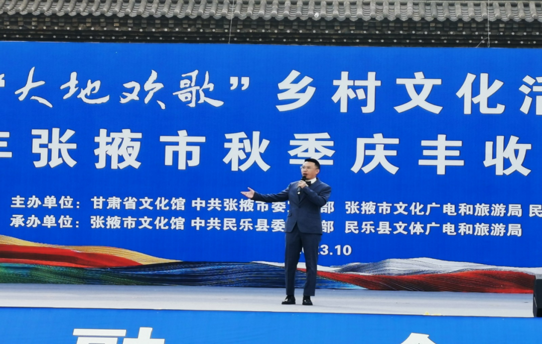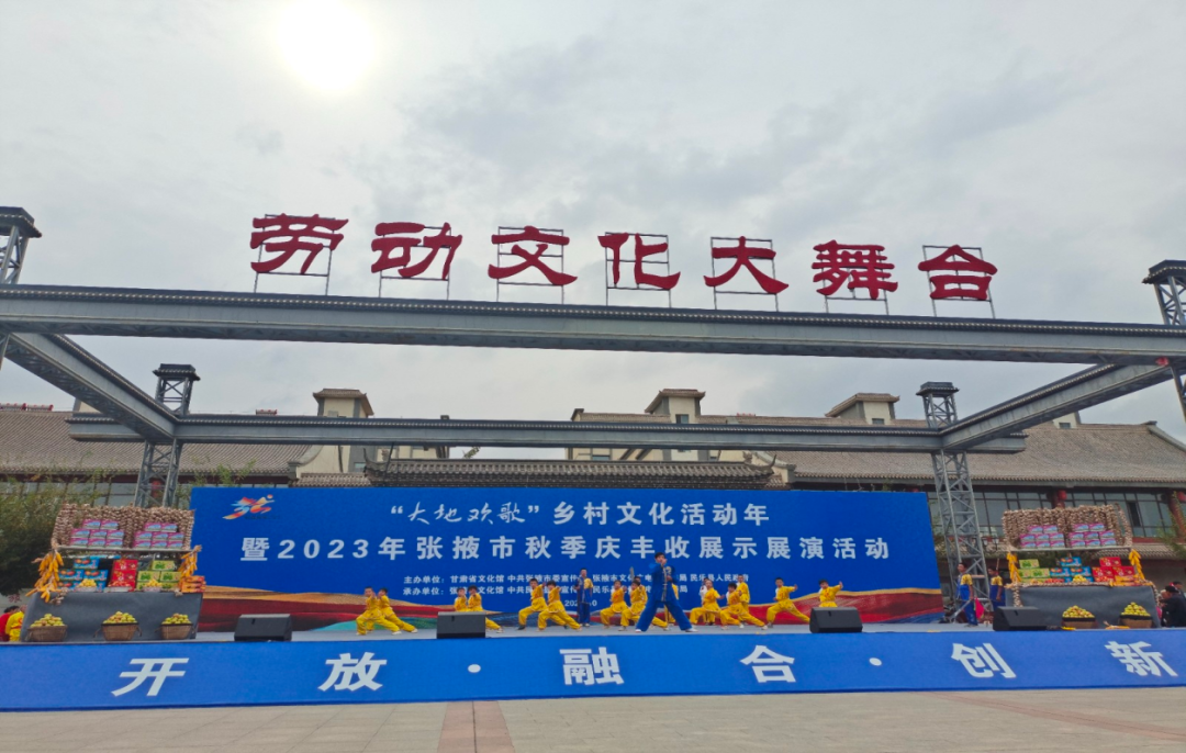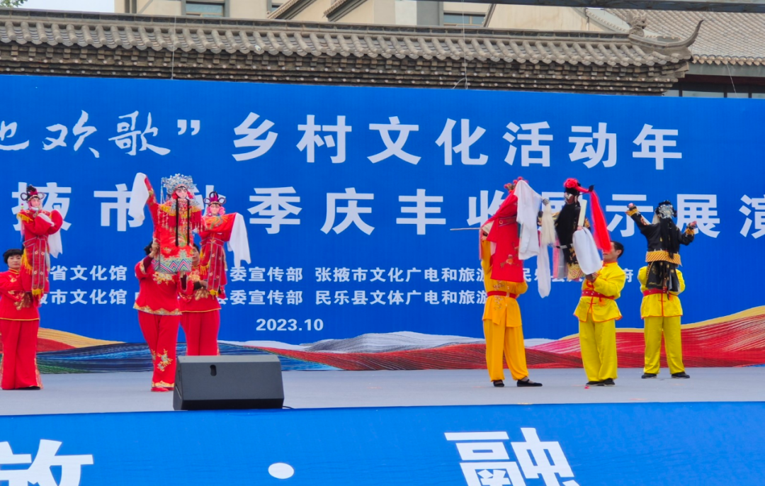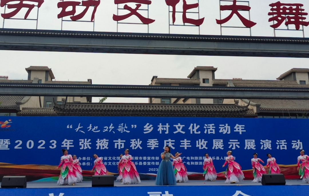 為深入學習宣傳貫徹黨的二十大精神,全面推進鄉村文化振興,推動公共文化服務高質量發展,豐富農村文化生活,滿足人民文化需求,10月12日,由甘肅省文化館、中共張掖市委宣傳部、張掖市文化廣電和旅游局、民樂縣人民政府主辦,張掖市文化館、中共民樂縣委宣傳部、民樂縣文體廣電和旅游局承辦的“大地歡歌”鄉村文化活動年暨2023年張掖市秋季慶豐收展示展演活動在民樂縣六壩絲路田園綜合體華彩呈現。