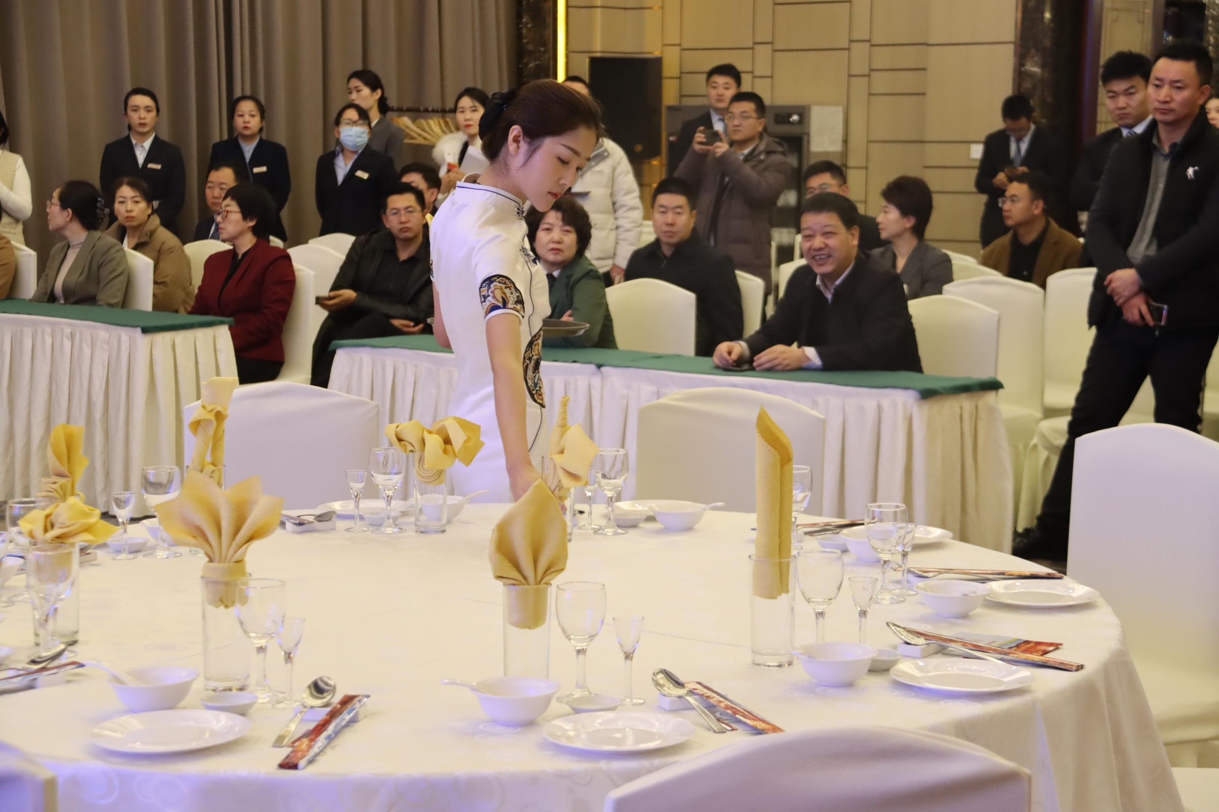 為了更好的幫助選手熟悉比賽流程和評分標準,競賽工作組專門安排全國星級飯店技能大賽優秀選手、全省星級飯店技能大賽一等獎獲得者,張掖市“服務明星”劉慧媛、王張玉為大家進行示范展示操作,兩位從業者嫻熟的動作、標準的操作、得體的儀態贏得滿堂喝彩……