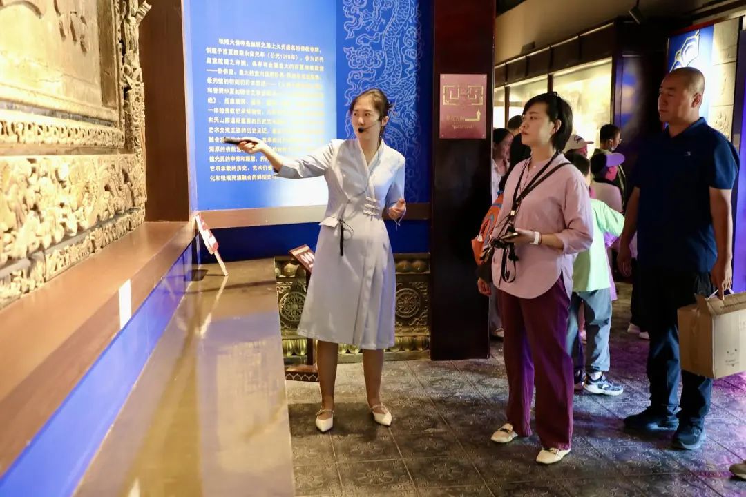 在大佛寺內(nèi),探訪團(tuán)靜心欣賞國(guó)內(nèi)最大的室內(nèi)臥佛,感受西夏皇寺的莊嚴(yán)肅穆;于馬蹄寺中,邂逅不遠(yuǎn)千里奔赴張掖的大連、重慶游客,一同感受馬蹄寺生態(tài)文化旅游區(qū)自然風(fēng)光、人文景觀、民族風(fēng)情。燈火璀璨、食客滿座的張掖甘州府城內(nèi),大型舞臺(tái)劇《鑿空—張騫出使西域》在此首演,給采訪團(tuán)帶來(lái)了一場(chǎng)穿越時(shí)空的文化盛宴;肅南草原上,來(lái)自內(nèi)蒙古、青海、四川、甘肅的17個(gè)市縣、13個(gè)代表隊(duì)300多名騎手在“賽馬會(huì)”上大展雄風(fēng),讓3萬(wàn)余名四海賓客在盡享“速度與激情”視覺(jué)盛宴的同時(shí)觀賞夏日山水中肅南的別樣風(fēng)情。40架熱氣球、國(guó)風(fēng)展演、冷煙花燃放及500架無(wú)人機(jī)飛行表演異彩紛呈,一場(chǎng)視覺(jué)與激情交織的熱氣球嘉年華“空中盛宴”在七彩丹霞景區(qū)“熱”力全開(kāi)……