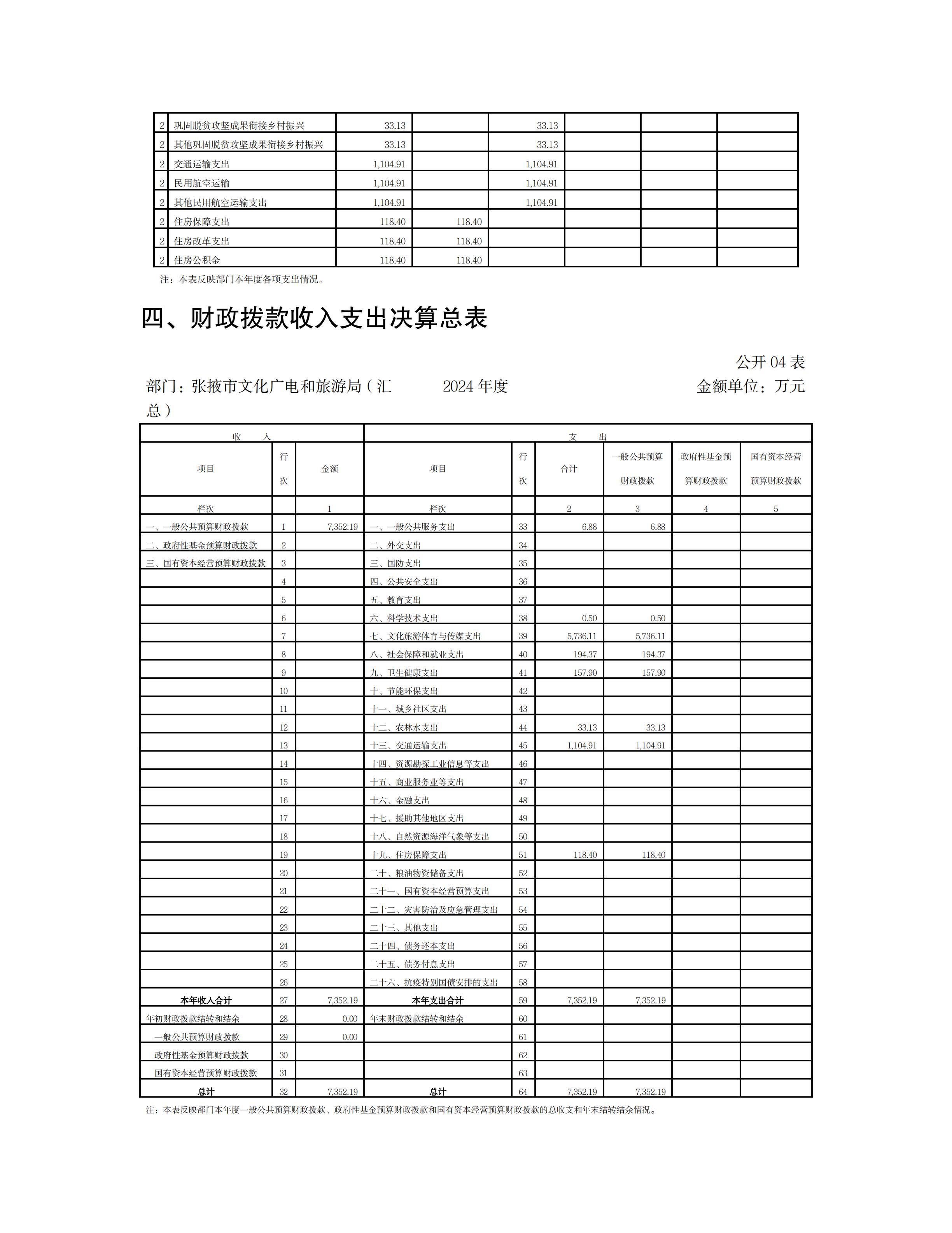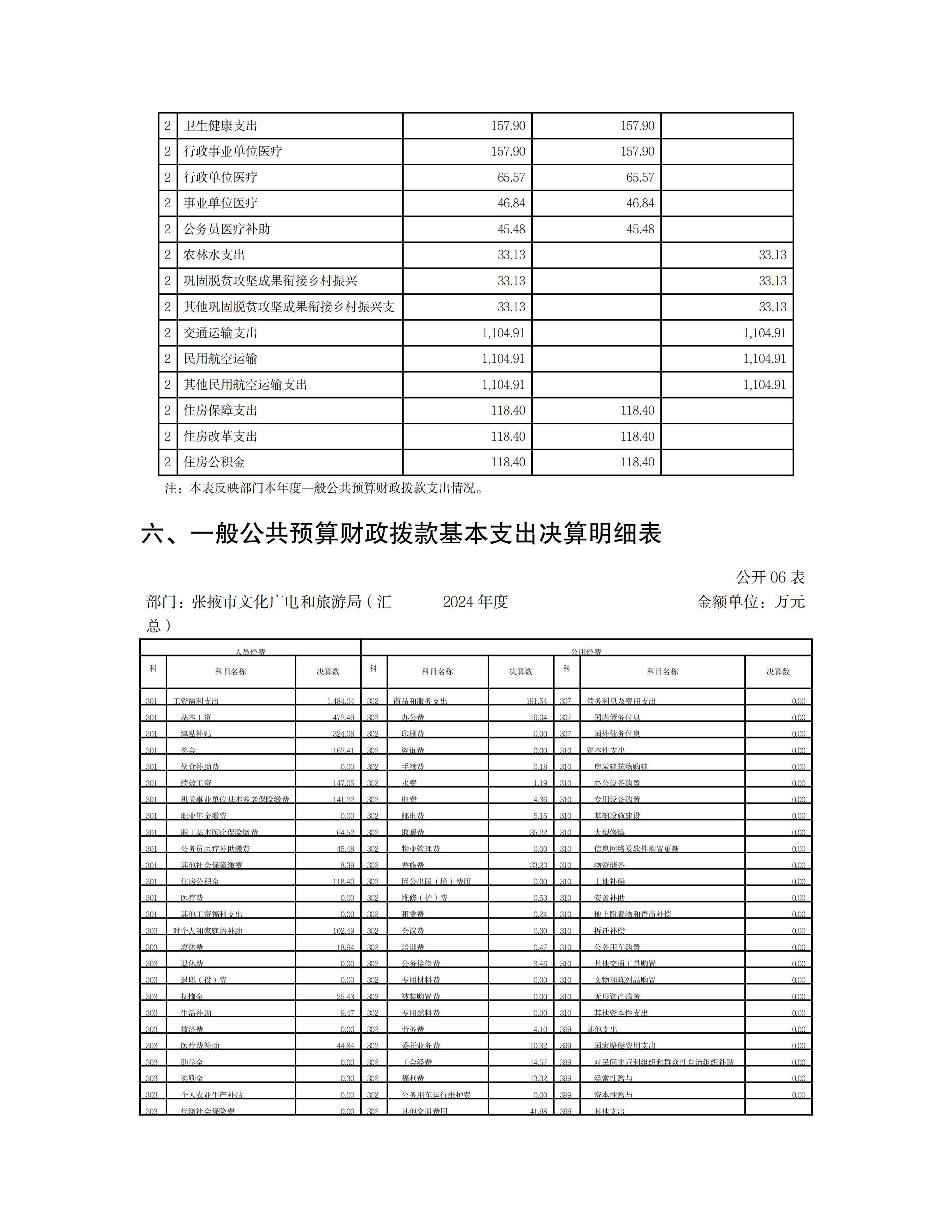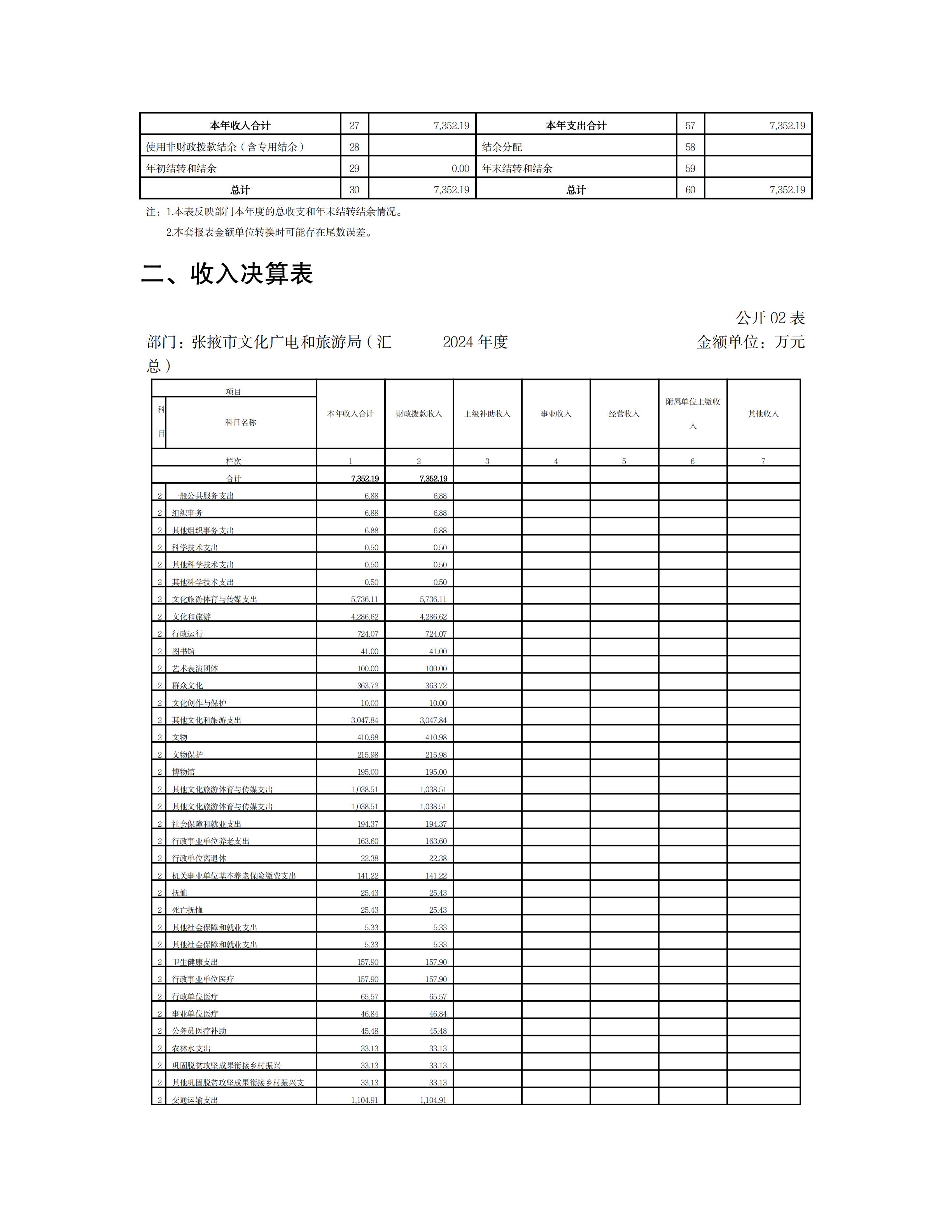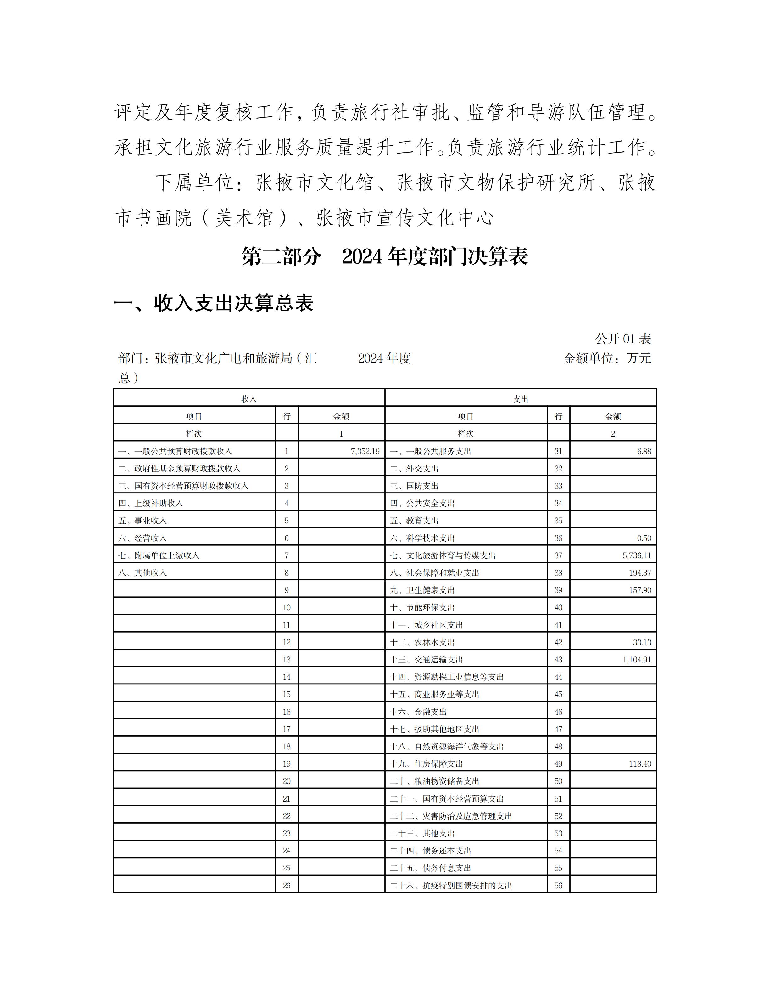2024年度張掖市文化廣電和旅游局(匯總)部門決算
