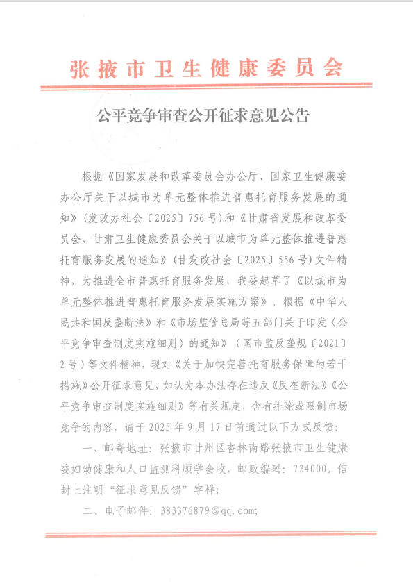 以城市為單元整體推進普惠托育服務發展實施方案公平競爭審查公開征求意見公告'>