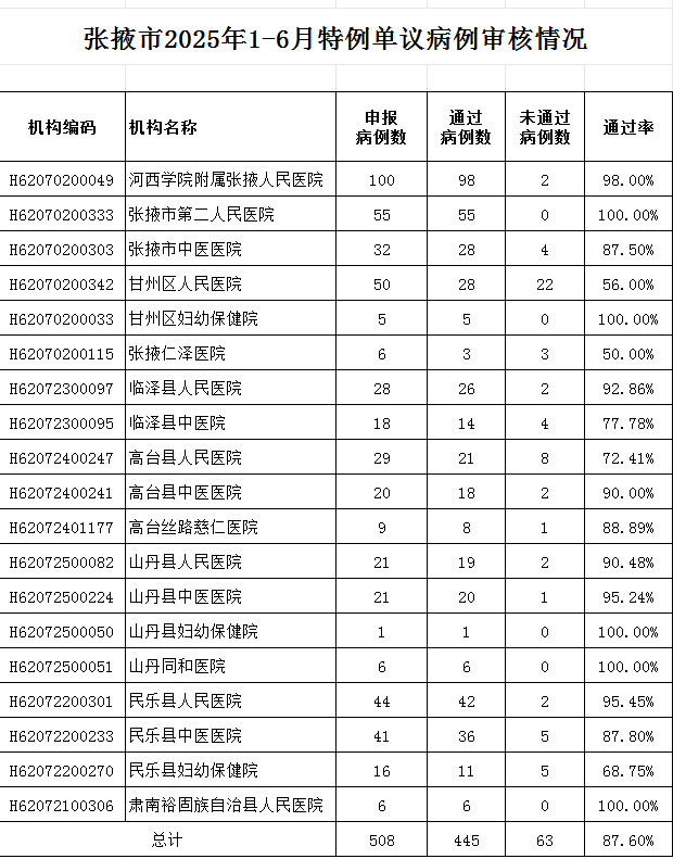 評審會對2025年上半年符合特例單議申報條件且由醫(yī)療機構申報的508份病例進行評審。最終通過病例445份,不通過病例63份,通過率為87.6%。