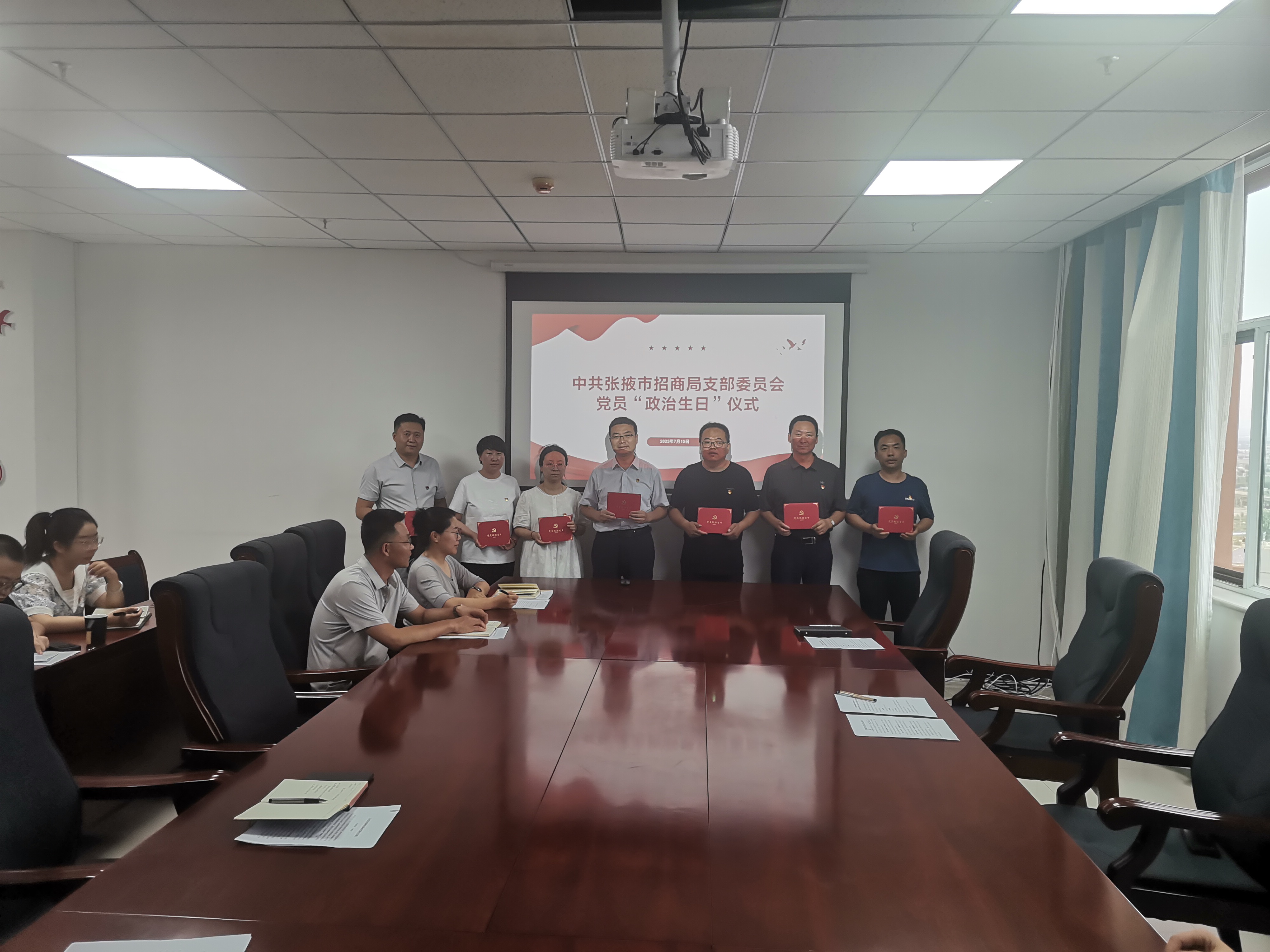 為進一步增強黨支部的凝聚力、組織力、戰斗力,強化黨員的身份意識、責任意識和宗旨意識,激發黨員的政治熱情,使廣大黨員始終保持黨的先進性和純潔性,7月15日,張掖市招商局黨支部開展“過政治生日·憶初心使命”+“悅讀黨員、書香支部”主題黨日活動。