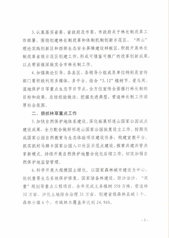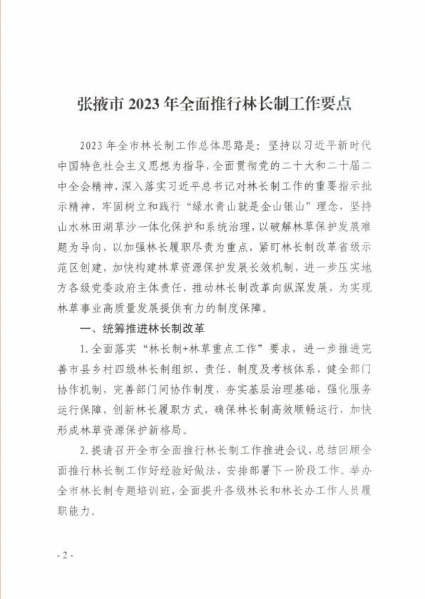 政策解讀:關于《張掖市2023年全面推行林長制工作要點》 的政策解讀