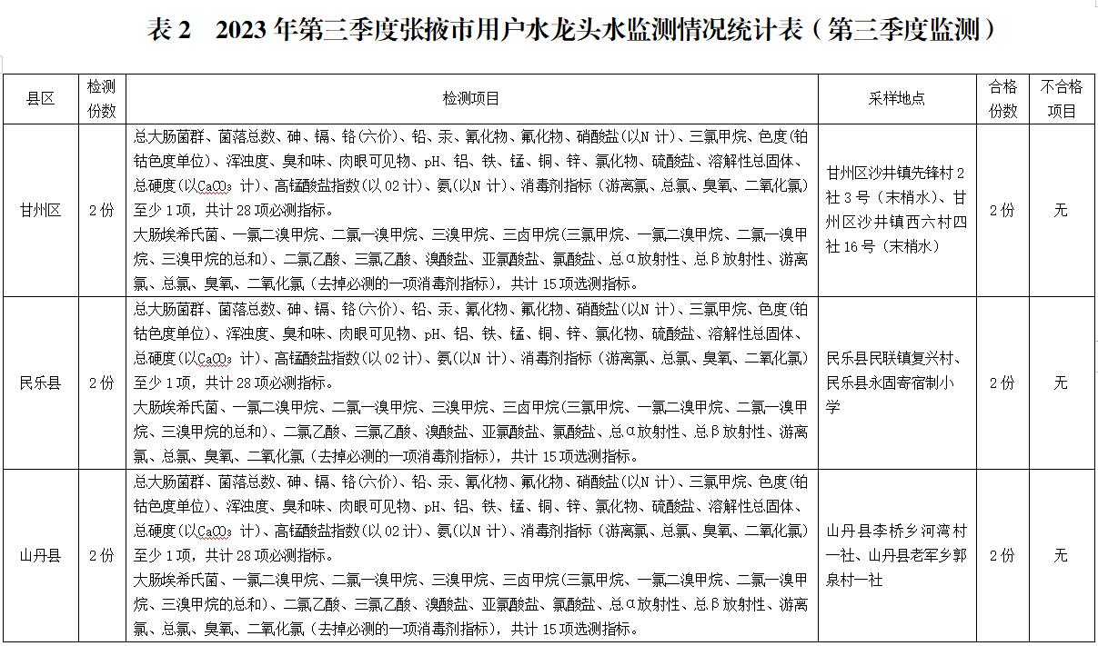 2.2023年第三季度張掖市用戶水龍頭水監測情況統計表(季監測)