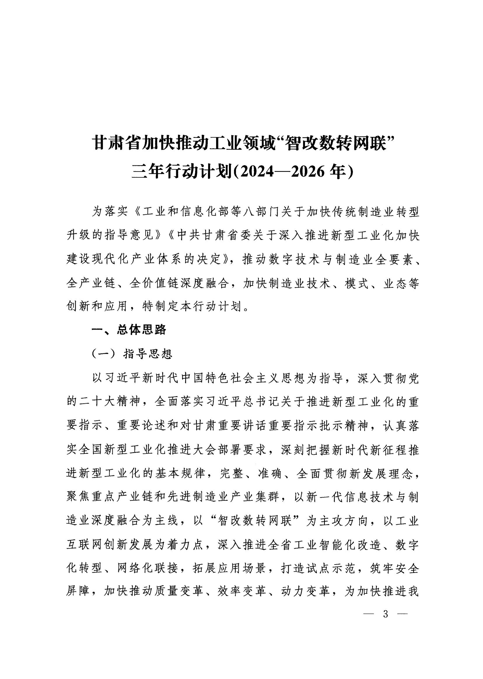 ????政策解讀:《甘肅省加快推動工業領域“智改數轉網聯”三年行動計劃(2024-2026年)》解讀