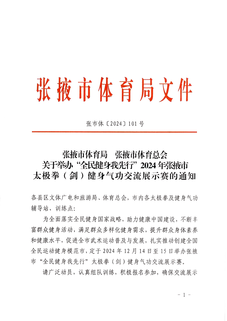 張市體〔2024〕101號 張掖市體育局??張掖市體育總會關(guān)于舉辦“全民健身我先行”2024年張掖市太極拳(劍)、健身氣功交流展示賽的通知.pdf