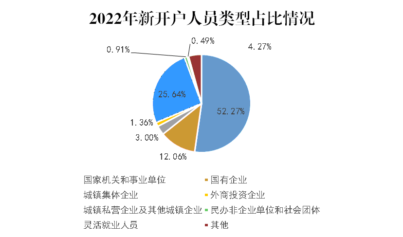 (二)機關事業單位依然是繳存主體,非公企業新增人數占比有所提高。《報告》顯示,2022年全市實繳職工7.78萬人,按單位性質分類,國家機關和事業單位依然是繳存主體,占當年繳存人數的72.81%,國有企業、集體企業占16.41%,城鎮私營企業及其他城鎮企業、外商投資企業、民辦非企業單位、其他類型單位等非公企業占9.77%,靈活就業人員占1.01%。非公企業占比低于上年全省13.61%、低于全國52.14%的水平,我市非公企業建制建繳空間依然很大。2022年全市新增繳存職工0.67萬人,其中公有制單位占67.33%,非公單位占32.18%,靈活就業人員占0.49%。非公單位占比比上年增長11.33%,住房公積金廣泛聯系企業、行業、繳存人的紐帶作用進一步發揮,架起了各行各業各群體溝通合作橋梁,積極助力全市經濟可持續高質量發展。