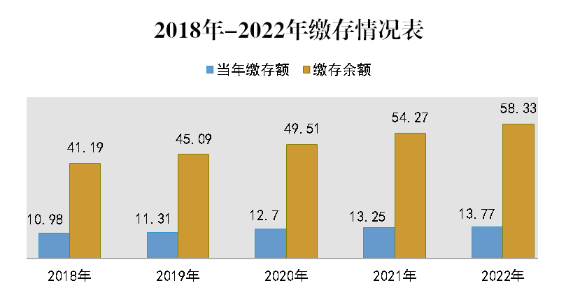 (一)繳存額穩步增長。2022年我市住房公積金繳存額和繳存余額分別為13.77億元和58.33億元,比2018年分別增加2.79億元和17.14億元,近5年繳存額年均增長5.89%。