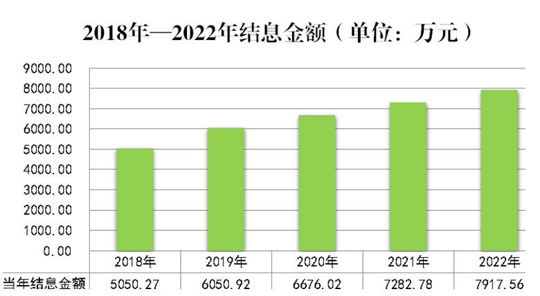 (五)結息保障繳存職工權益。2022年按中國人民銀行規定利率1.5%為繳存職工結息7917.56萬元,5年來共為繳存職工結息32977.55萬元,有效保證了繳存職工的住房公積金保值增值。
